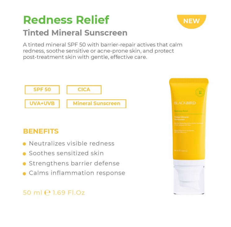 By merging dermatological science with daily cosmetic comfort, Blackbird Skincare’s Redness Relief Tinted Mineral Sunscreen SPF 50 redefines what a sensitive-skin sunscreen should be: a protector, a corrector, and a restorer in one.